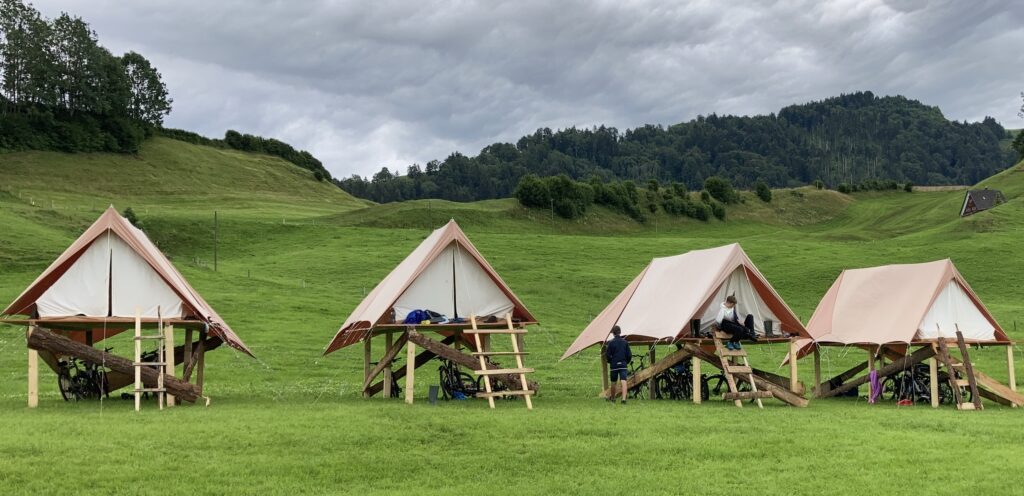 Nach dem Morgenessen brach weltweit eine Hungersnot aus. Alles Essen verfaulte und verschwand. Somit startete das Kochgame. Wir mussten an den Posten Geld verdienen, mit welchem wir uns Land, und später auch Gebäude und auch Tiere kaufen konnten. Über dem Feuer konnten wir unser Essen dann kochen. In unserer Gruppe gab es „Ghackets mit Hörnli“. Für den Nachmittag fuhren wir in die Badi, welche mit dem Velo nur 10 Minuten entfernt war. Wir spielten Volleyball, bräunten uns und schwammen im Wasser. Nach 4 Stunden in der Badi machten wir uns auf den Rückweg zum Lagerplatz. Nach dem feinen Abendessen (Fotzelschnitten) gab es eine JP-, P- und Spez-Aktivität. Nach dem Lied „Kein schöner Land“ ging es für uns in das Land der Träume.
